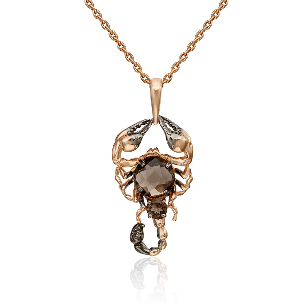 Wunderschöner Anhänger „Skorpione“ aus Gold mit einem Rauchquarz. Durch seine exzellente, detaillierte Verarbeitung wird das Schmuckstück zu einen echten Kunstwerk. Absoluter Hingucker! Und mit einer passenden Kette aus Rosegold wird das Geschenk perfekt. Diese findest Du in unserem Assortiment.