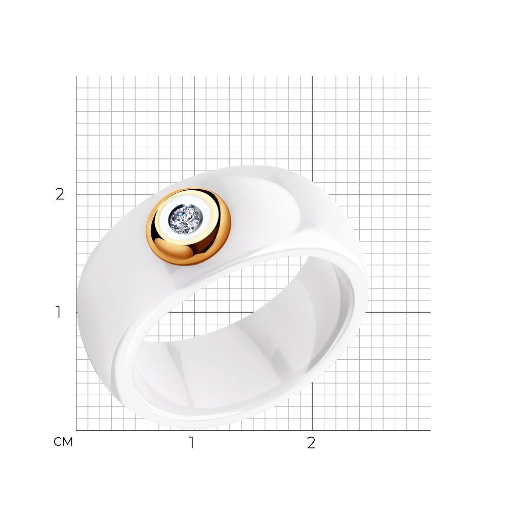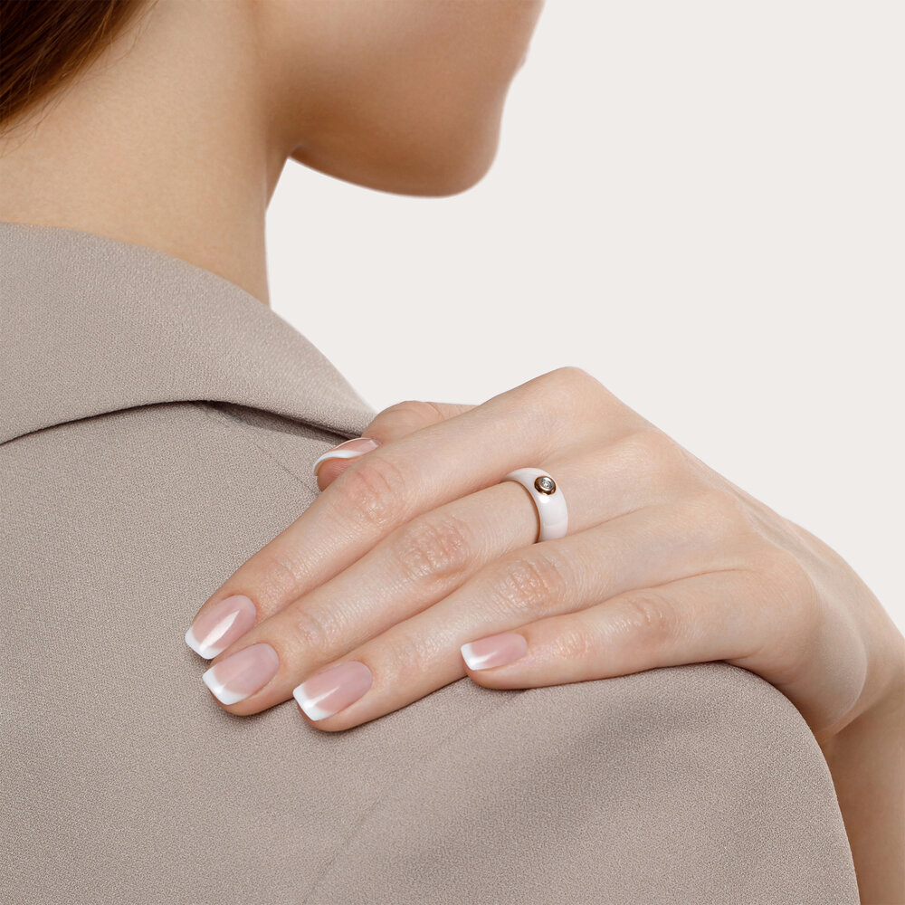 Keramikring aus makelloser Keramik in Weiß mit Gold 585 und einem Diamanten verziert
