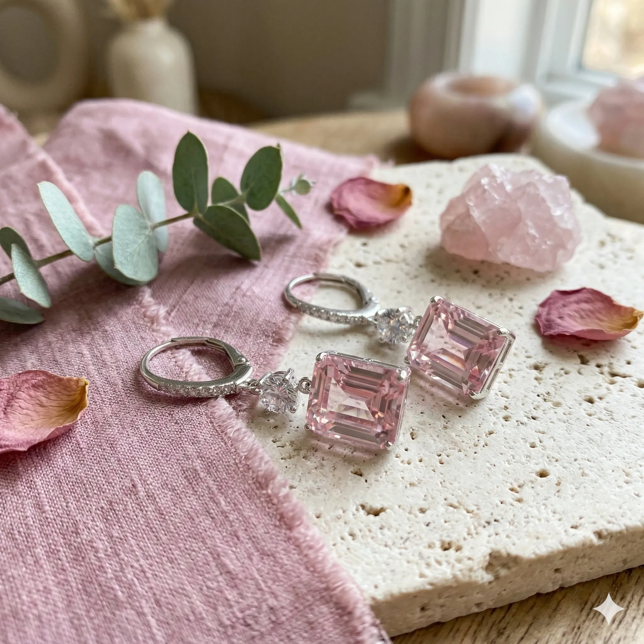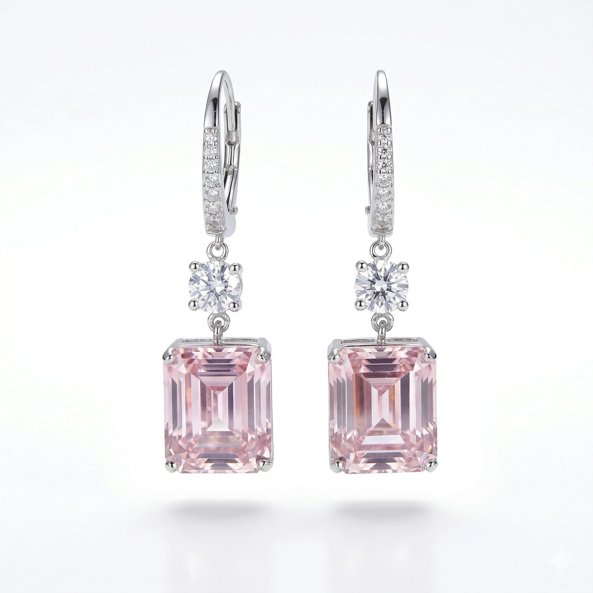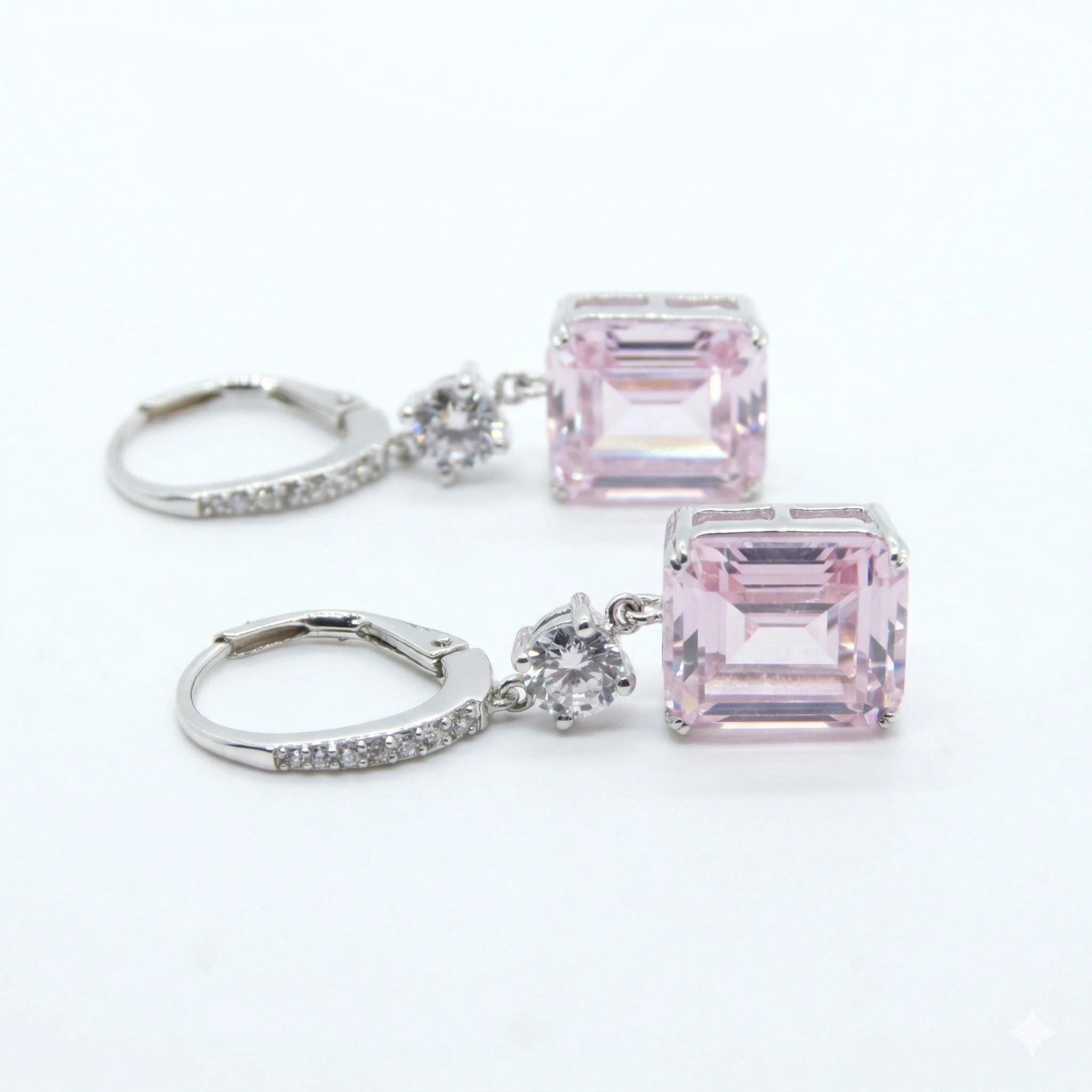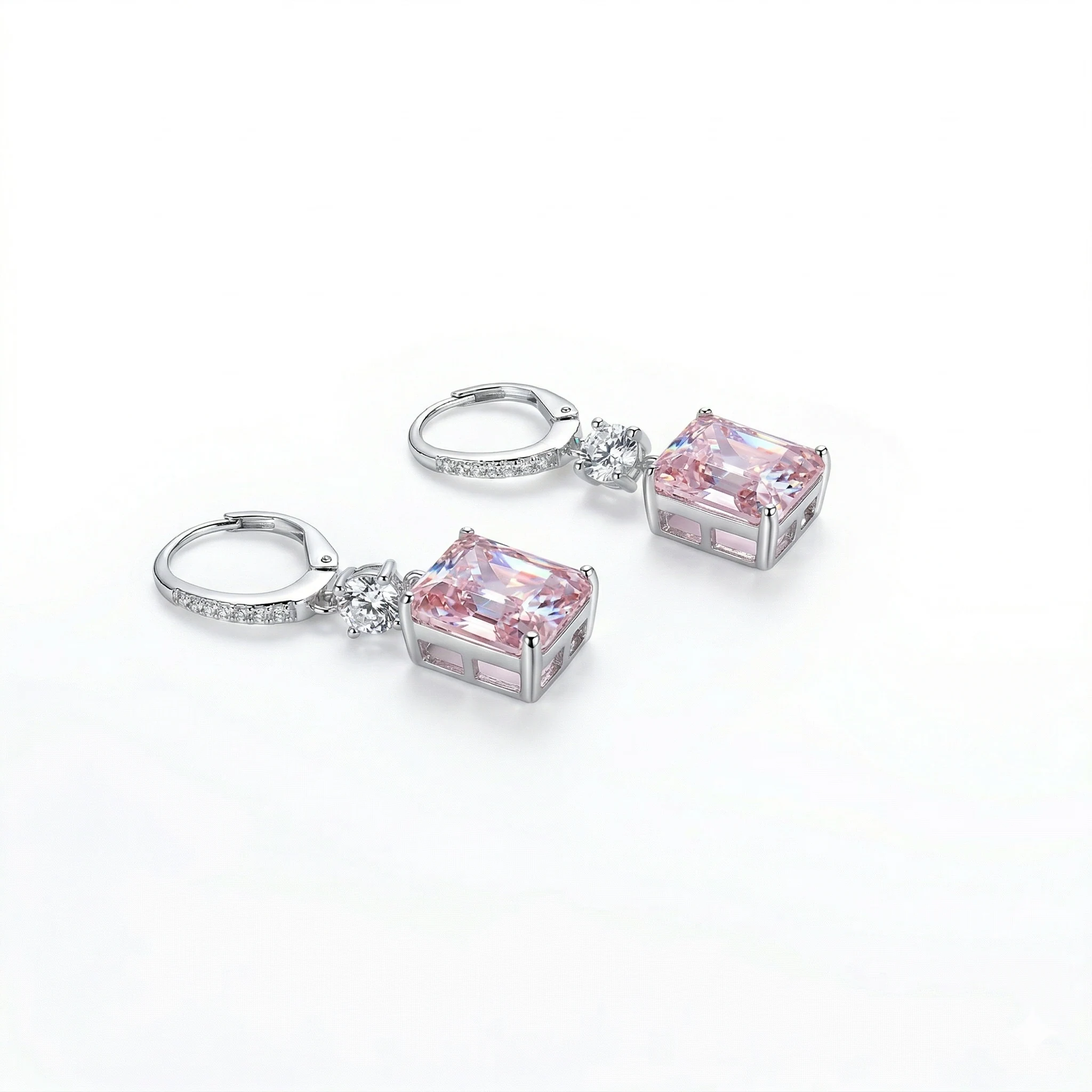 - Klassische Ohrringe mit funkelndem Zirkonia im Oktagon-Schliff in zartem Rosa